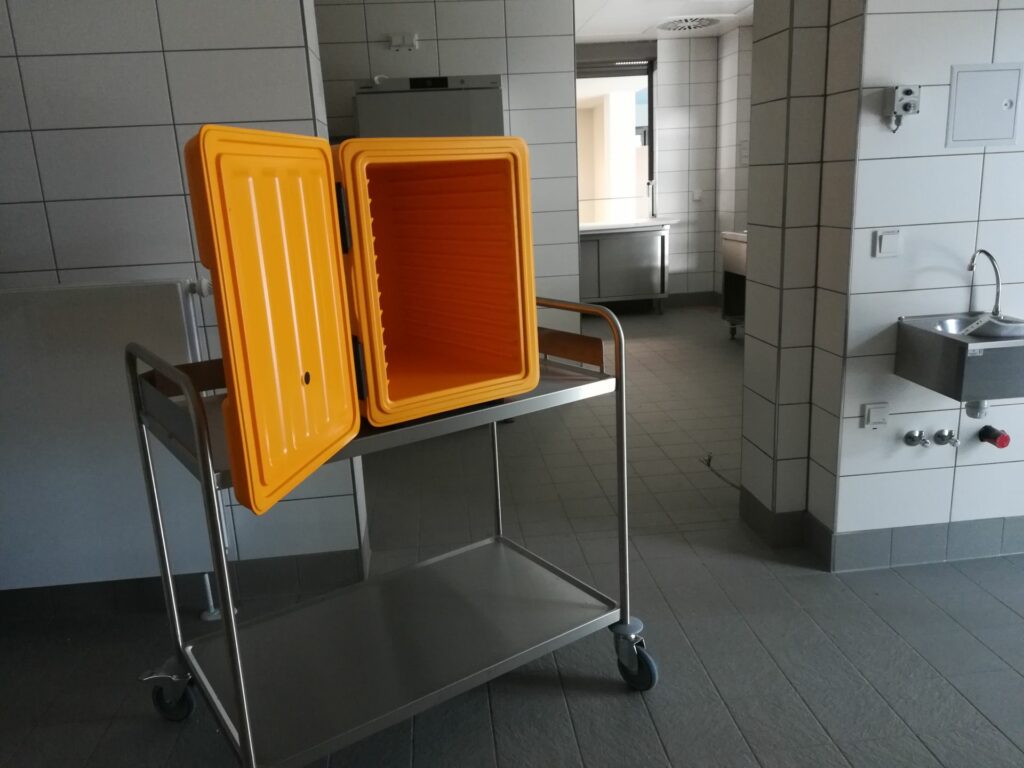Der Geschirr-Rücklauf erfolgt über ein einfaches, aber effektives Abräumsystem mit Hupfer-Abräumwagen. Dieses kostengünstige Rücklaufsystem ist leicht verständlich und garantiert reibungslose Abläufe selbst bei großem Andrang.