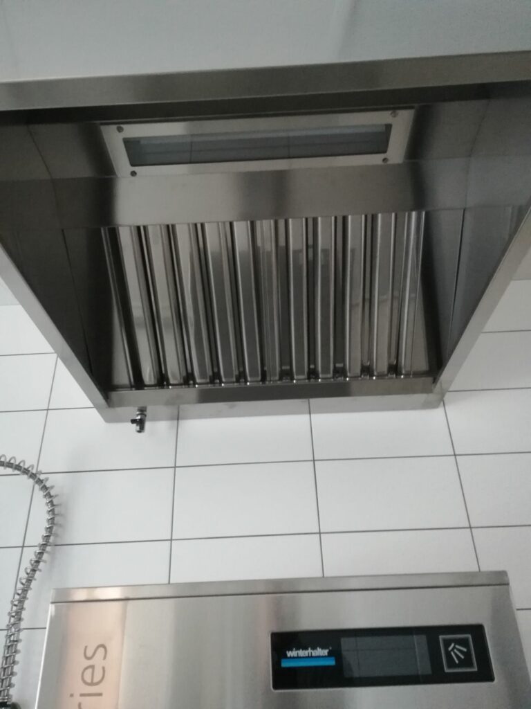 Ein weiteres technisches Detail ist die installierte CleanLine-Ablufthaube mit serienmäßiger Echtglasbeleuchtung hinter Edelstahlfiltern. Diese sorgt für eine sehr gute Ausleuchtung der Arbeitsbereiche und erleichtert zugleich die Reinigung – robust, funktional und wartungsfreundlich.