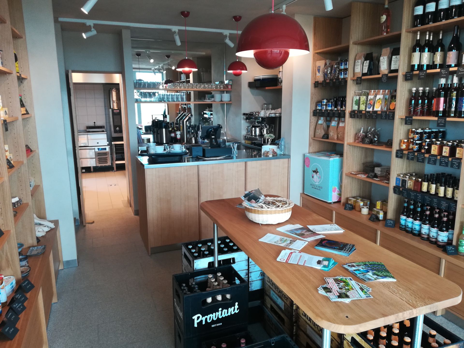 Im Dorfladen mit Café von Schloss Broock wird täglich frisch,