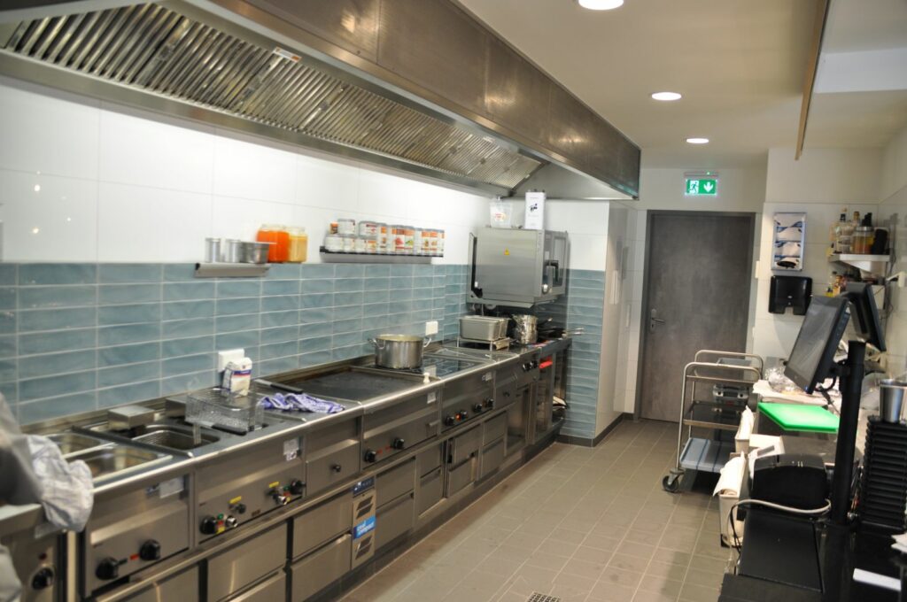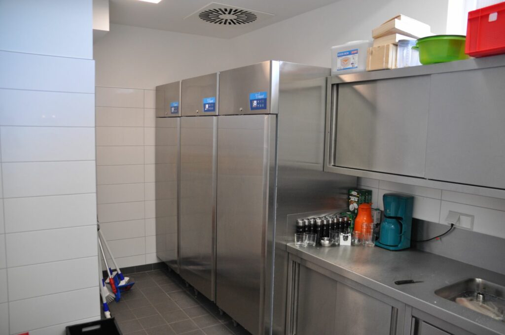 Im Spülbereich sorgen Winterhalter PT-M Spülmaschinen in Standard- und Energy-Ausführung für einen reibungslosen Ablauf. Die Kältetechnik stammt von CoolCompact: zentralgekühlte Kühlschränke, Tiefkühlschränke, Kühltische, ein Schockfroster sowie ein Konfiskatkühler sorgen für durchgehend sichere Lagerung.