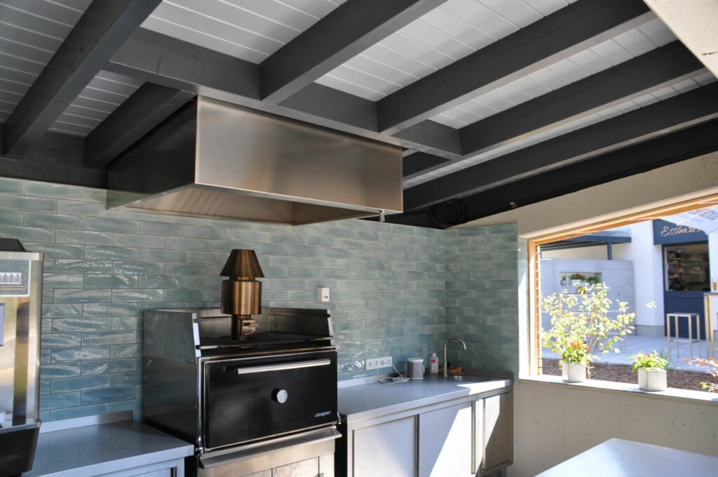 Ein besonderes Highlight bildet der separate Grillpavillon: Hier wurde von New Gastroline eine eigenständige Edelstahlzeile mit großzügiger Arbeitsfläche und viel Stauraum realisiert – perfekt für Events und Hochbetrieb.
