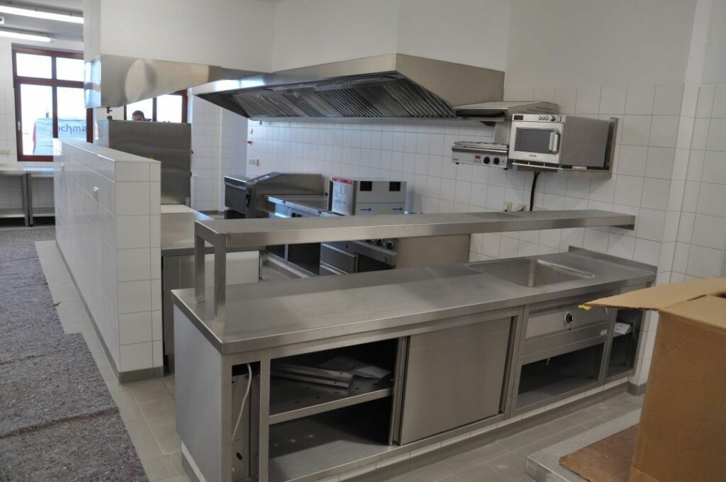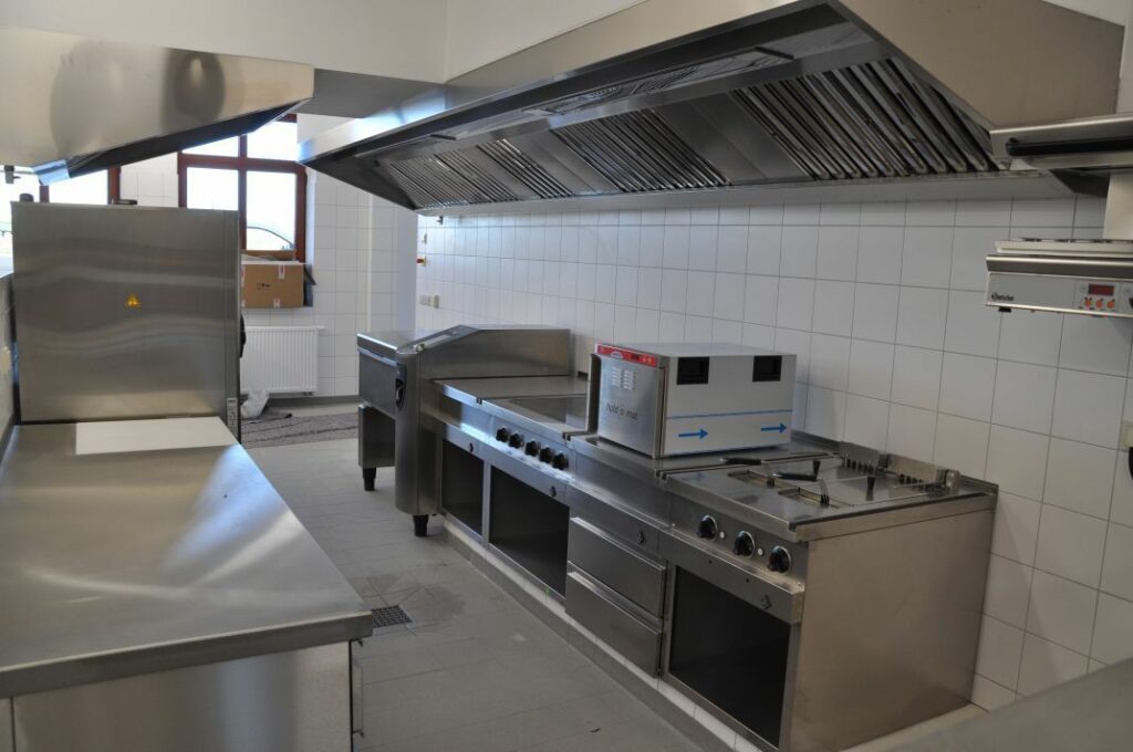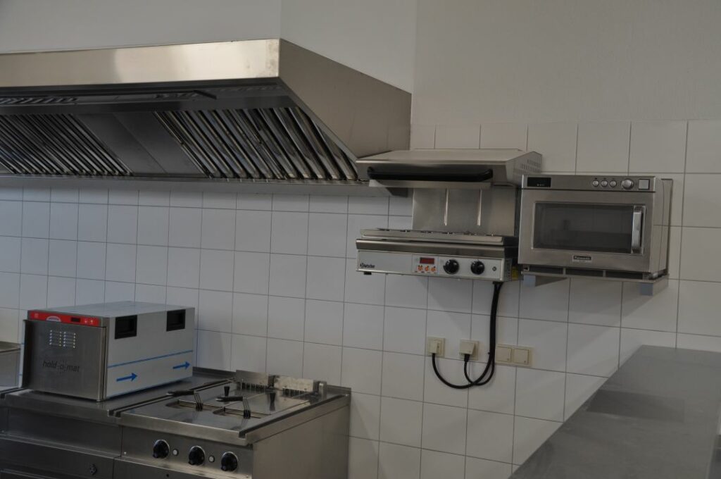 Im Zentrum steht ein VarioCooking Center in Kombination mit Kombidämpfer und großvolumigen Kochgeräten. Diese Ausstattung erlaubt eine flexible und produktive Speisenzubereitung – von kleinen Gruppen bis hin zu Großveranstaltungen.