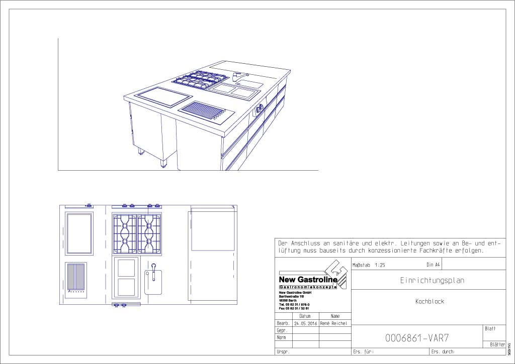 In enger Abstimmung mit dem Auftraggeber wurde ein individueller Mix aus Haushalts- und Gewerbeeinbaugeräten geplant und umgesetzt. Besonderes Augenmerk lag auf der Einbindung eines Gasherdes, der passgenau integriert wurde. Die bündig eingelassene Granitarbeitsplatte bildet das gestalterische Highlight – funktional, hochwertig und optisch beeindruckend.