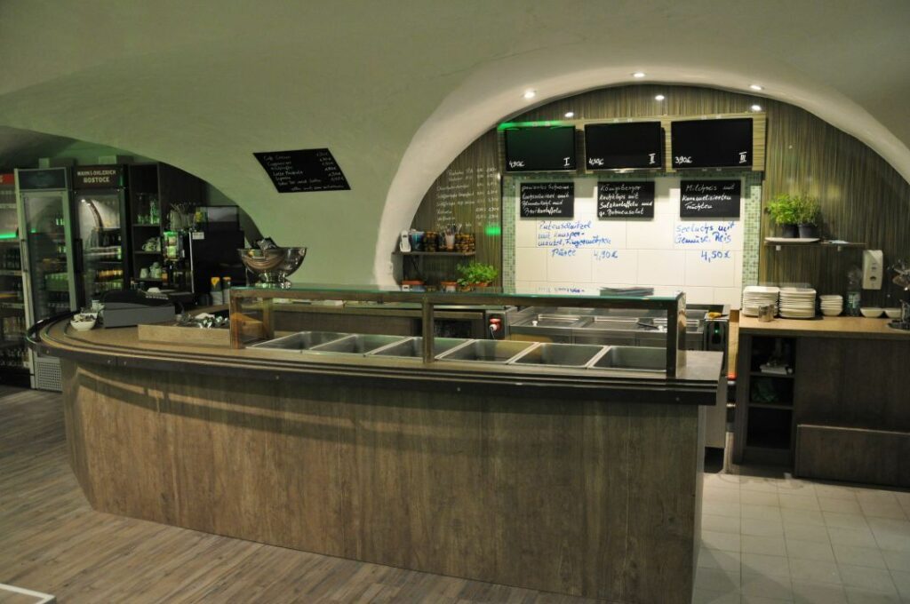 Mitten im Stadtzentrum von Rostock, im historischen Gewölbekeller eines Untergeschosses, entstand die Kröpikeller Kantineria – ein Schnellrestaurant mit besonderem Charme, aber auch besonderen technischen Anforderungen. Da eine klassische Abluftführung baulich nicht realisierbar war, entwickelte New Gastroline eine maßgeschneiderte Lösung.