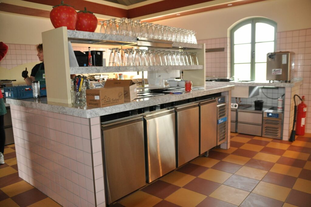 Im Zentrum stehen 12 Neumärker Waffeleisen, die das Backen der unverwechselbaren Erdbeerwaffeln ermöglichen. Für perfekte Lagerbedingungen sorgen speziell angepasste Kühltische von CoolCompact in Sonderhöhe – abgestimmt auf die Arbeitsprozesse in der Manufaktur.