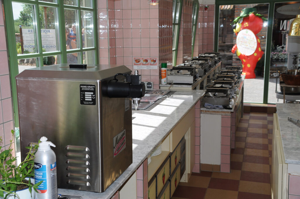 Die Sahneveredelung der Waffeln erfolgt durch leistungsstarke Sahneautomaten von Mussana, die zuverlässig für luftige Textur und gleichbleibende Qualität sorgen – selbst bei hoher Auslastung.