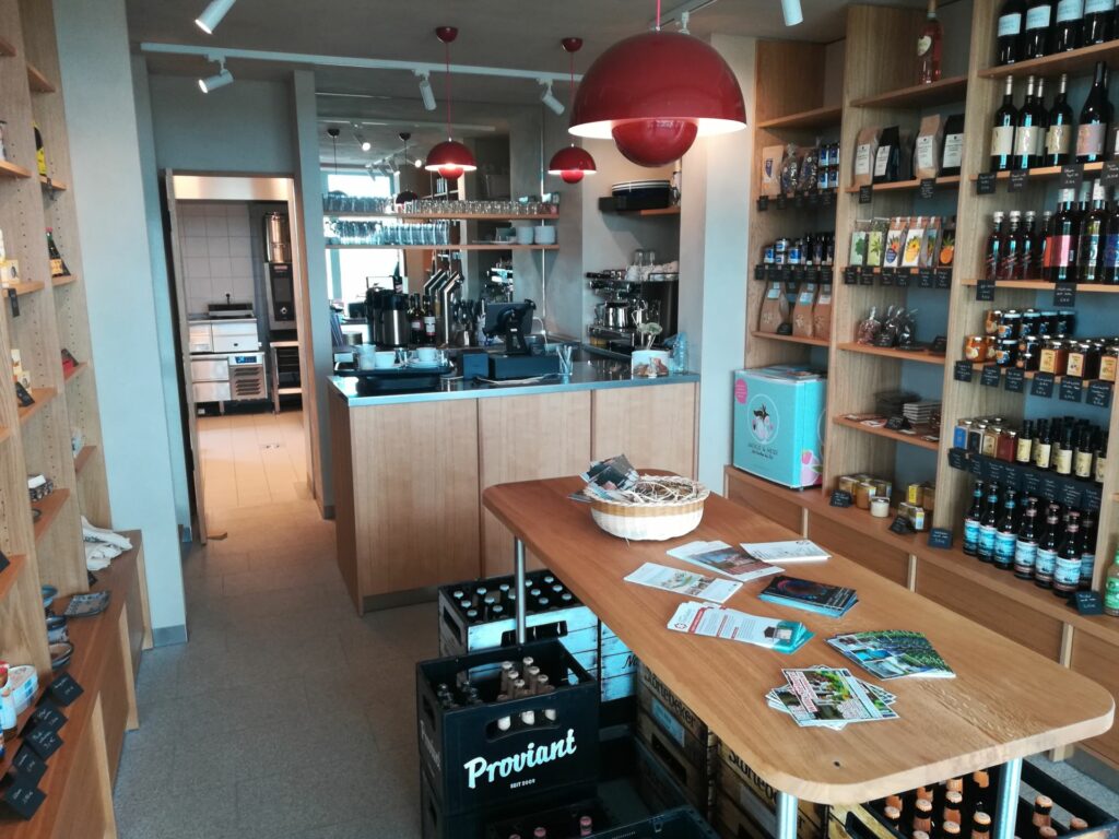 Im Dorfladen mit Café von Schloss Broock wird täglich frisch,…