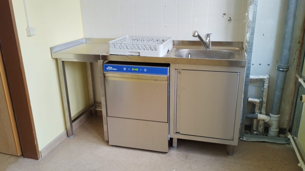 In der Hauptküche des Strandhotels Zingst wurde die vorhandene Spültechnik…