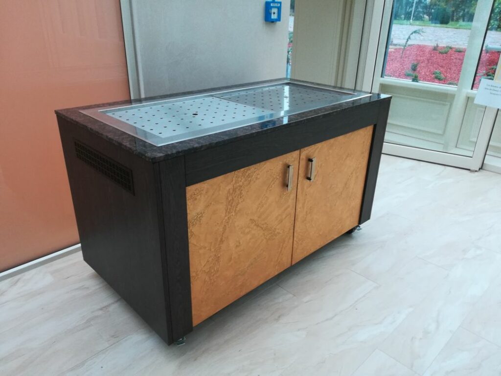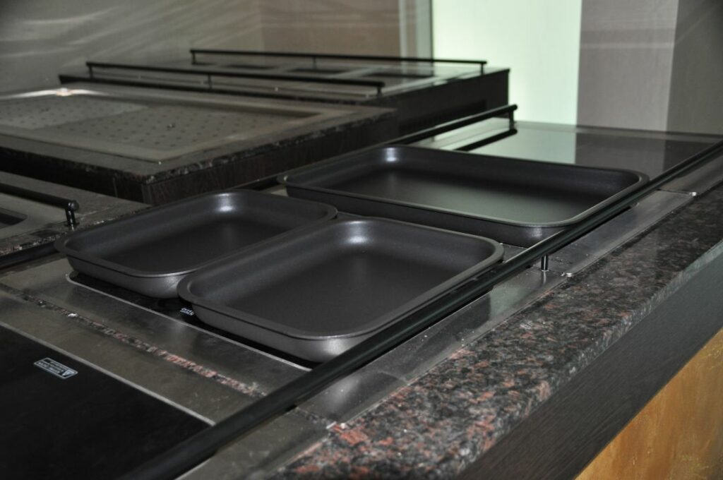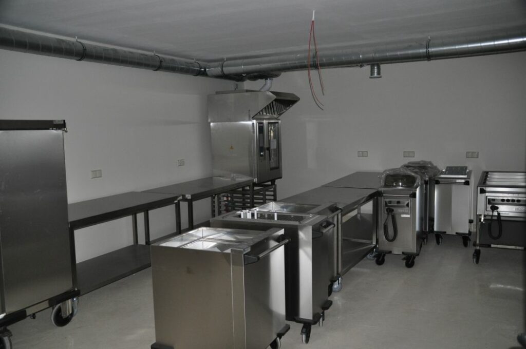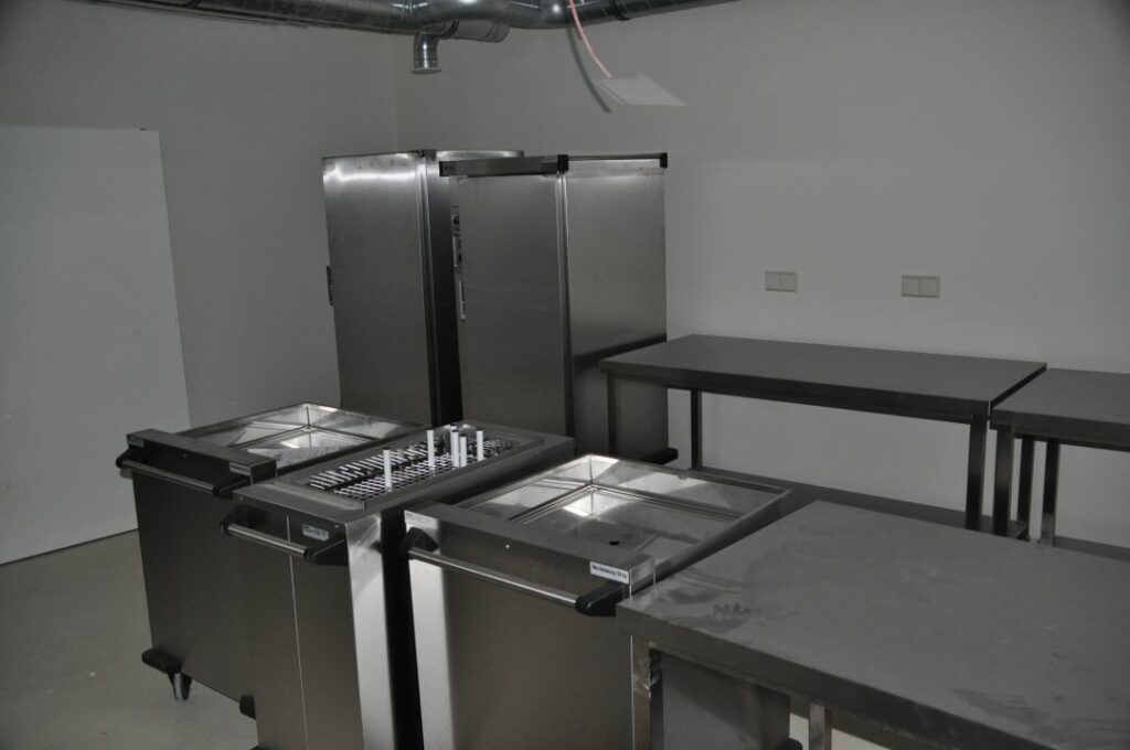 Herzstück der mobilen Ausstattung sind Rieber-Ausgabewagen, Stapler und Spendersysteme, bestückt mit K-Pots und Thermoplates, die einzeln temperaturregulierbar sind. Ergänzt wurde die Anlage um eine eigenständige Kaltausgabe für erweiterte Buffetvielfalt – von Frühstück bis festlichem Bankett.