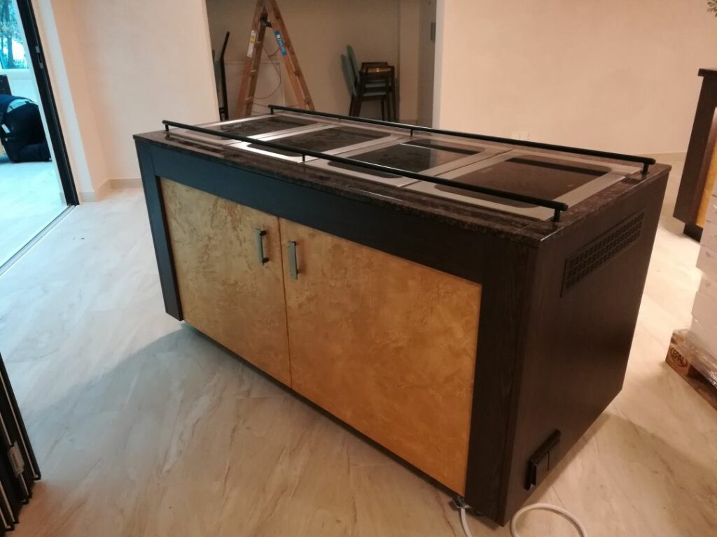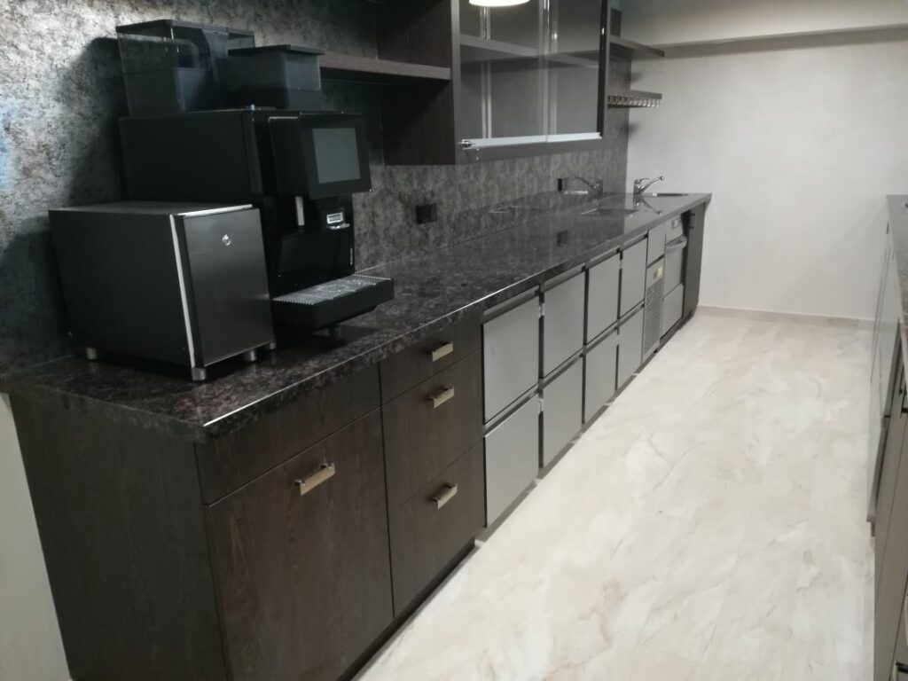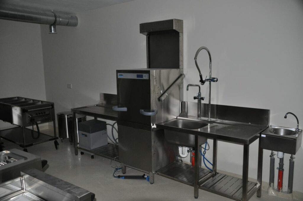 New Gastroline übernahm die Planung und Ausstattung der Verteilerküche sowie der Bar- und Ausgabetechnik. Ziel war ein flexibles, hochwertiges Konzept für unterschiedlichste Veranstaltungsformate.