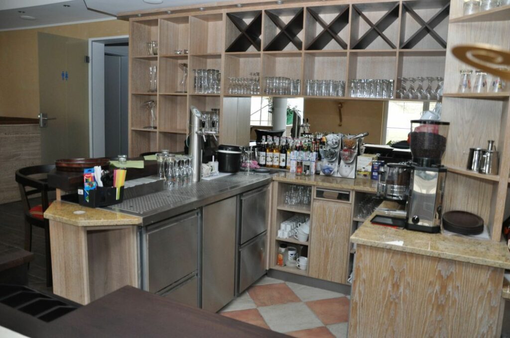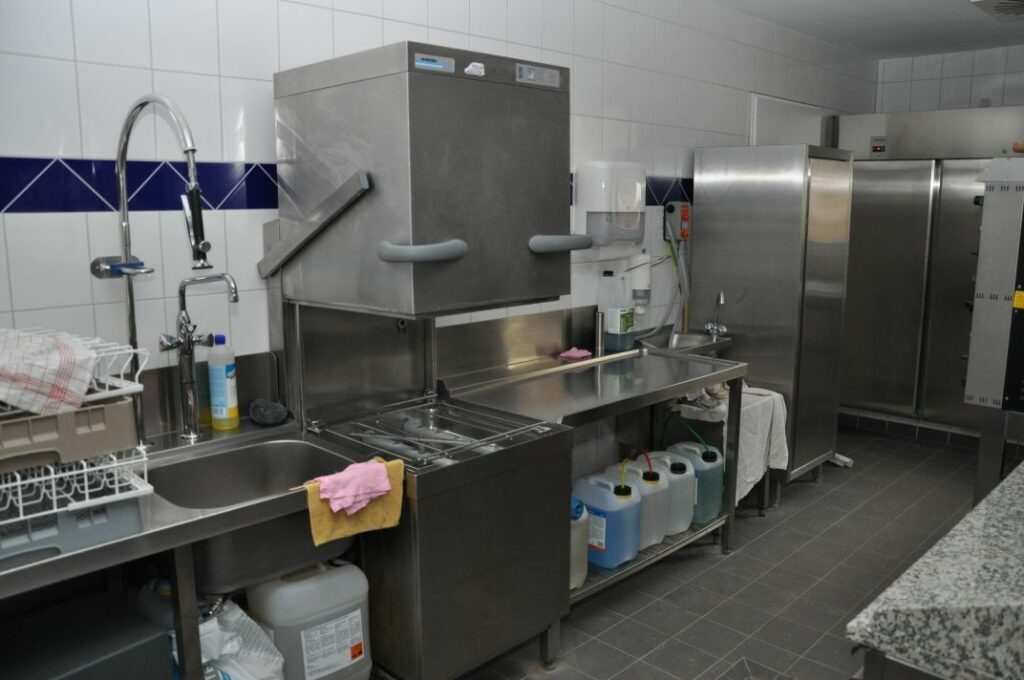Auch im Servicebereich wurde durchdacht geplant: Im Tresenbereich sind Kühltheke, Tiefkühlung und eine Spülmaschine mit integriertem Korblagersystem kompakt untergebracht. In der Kaltausgabe ermöglichen versenkte Kühlwannen die attraktive Präsentation von Platten und Schüsseln.