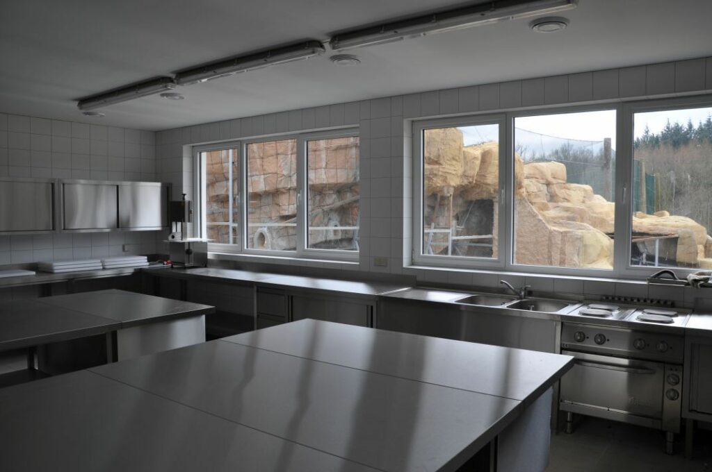Für die neue Arbeitsküche der Pinguinanlage im Vogelpark Marlow durften wir eine funktionale und hygienisch durchdachte Lösung realisieren. Alle Möbel wurden millimetergenau in den Raum eingepasst und aus hochwertigem, nicht rostendem Edelstahl gefertigt.